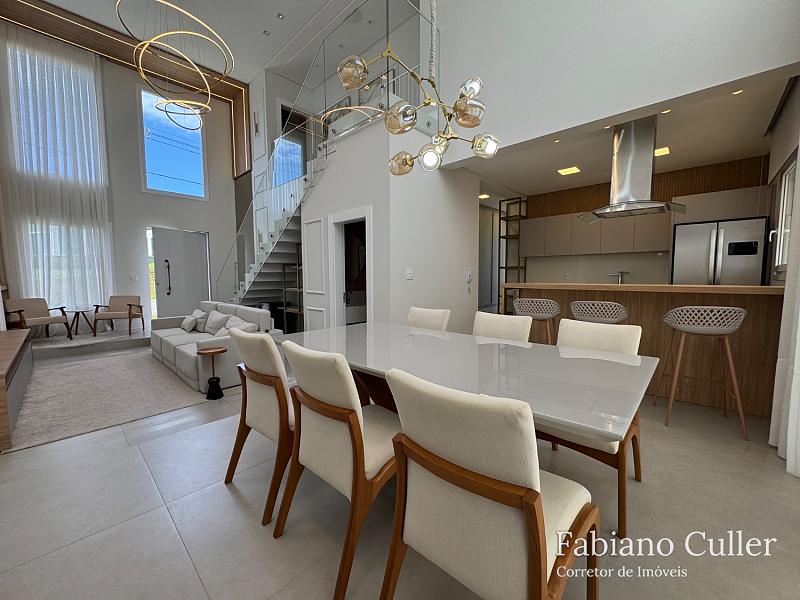 MOBILIADA, EQUIPADA E DECORADA EM UM CONDOMÍNIO FECHADO DE ALTO PADRÃO APENAS 05min PRAIA BRAVA Casa no Condomínio Costa Verde em Itajaí com 324 m² de área privativa. O imóvel conta com 03 suítes sendo 01 suíte master com banheira de hidromassagem e closet, living integrado à sala de estar e jantar com pé direito de 6 metros, proporcionando amplitude e sofisticação ao ambiente,área de serviço, cozinha equipada, lavabo, espaço gourmet externo com churrasqueira a carvão automatizada, piscina aquecida com tratamento a sal, banheiro externo, despensa, ampla lavanderia e garagem para 04 veículos com portão eletrônico.