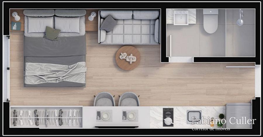 Opção de entregar Studio 100% mobiliado